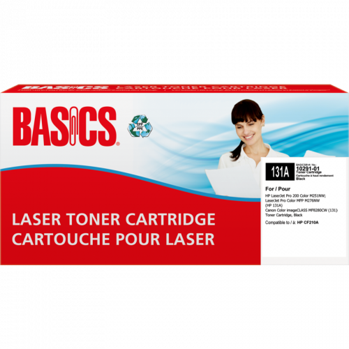 Basics® Brand cartridges are manufactured at North American ISO 9001:2000 registered facilities using returned, original equipment cartridges. These cartridges are designed, engineered and manufactured to meet OEM performance while ensuring top quality and consistent output. OEM# 131A. Basics®. HP LaserJet Pro 200 Color M251NW; LaserJet Pro Color MFP M276NW. Contains a minimum of 88% post-consumer recycled content. Yields 1,600 pages. Black.