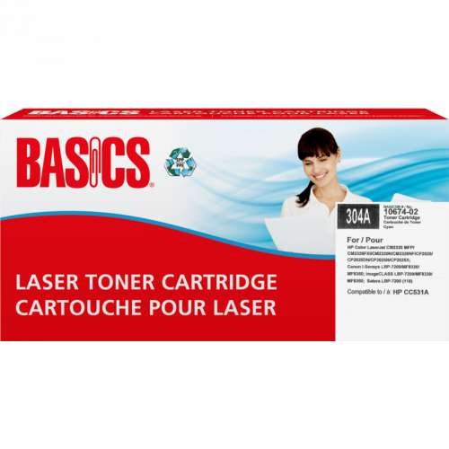 Basics® Brand cartridges are manufactured at North American ISO 9001:2000 registered facilities using returned, original equipment cartridges. These cartridges are designed, engineered and manufactured to meet OEM performance while ensuring top quality and consistent output. OEM# 304A. Basics®. HP Color LaserJet CM2320 MFP, CM2320FXI, CM2320N, CM2320NF, CP2025, CP2025DN, CP2025N, CP2025X. Cross Compatible with Canon I-Sensys LBP-7200C, LBP-7200CN, MF8330CDN, MF8350CDN; imageCLASS LBP-7200CDN, MF8330CDN, MF8350CDN, MF8380CDW, MF8380CW; Color imag. Contains a minimum of 46% post-consumer recycled material. Yields 2,800 pages. Cyan.