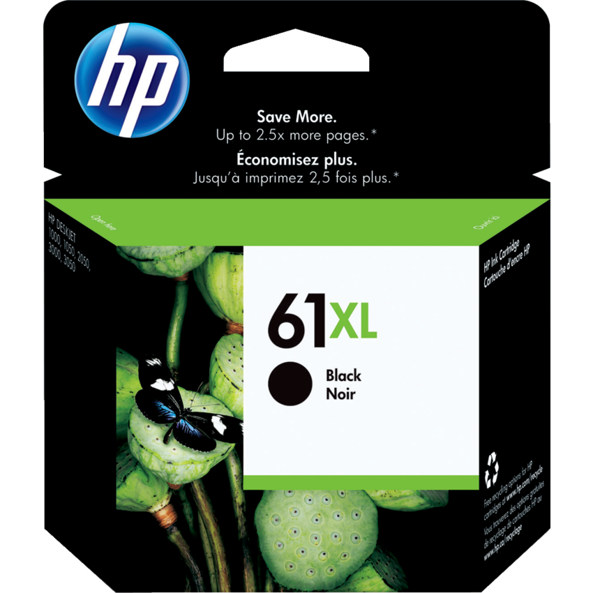 61XL. HP. Deskjet 1000, 1010, 1012, 1050, 1051A, 1055, 1056, 1510, 1512, 1514, 2050, 2510, 2512, 2514, 2540, 2541, 2542, 2544, 2545, 2546B, 2546P, 2546R, 2547, 2549, 3000, 3050, 3050A, 3051A, 3052A, 3054, 3054A, 3056A, 3510, 3511, 3512, ENVY 4500, 4501, 4502, 4504,. Yields 480 pages. High yield. Black.