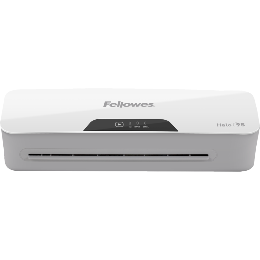 User-friendly home office personal laminator. Halo™ 95. 9-1/2” document entry width. InstaHeat Technology delivers rapid one-minute warm up. Convenient release lever allows easy pouch re-centering or removal. Auto-Shut Off saves energy and prevents overheating. Accepts 3 and 5 mil hot or cold pouches. 12"/min. laminating speed. Includes 10 ImageLast™ Laminating Pouches. 2-year warranty. 13-1/2"W x 4-3/8"D x 3"H.