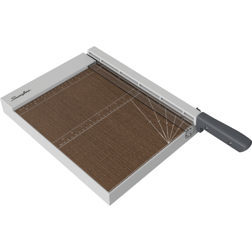 A guillotine like blade made from premium materials for long lasting sharpness with built in guard rail and latch to lock the trimmer for added safety. Features an alignment grid and dual scale ruler for accurate measurement. EdgeGlow™ illuminated LED cutting edge provides accurate indication of cut line location (requires 3 "AAA" batteries, included). 12". Cuts up to 10 sheets of 20 lb. paper.
