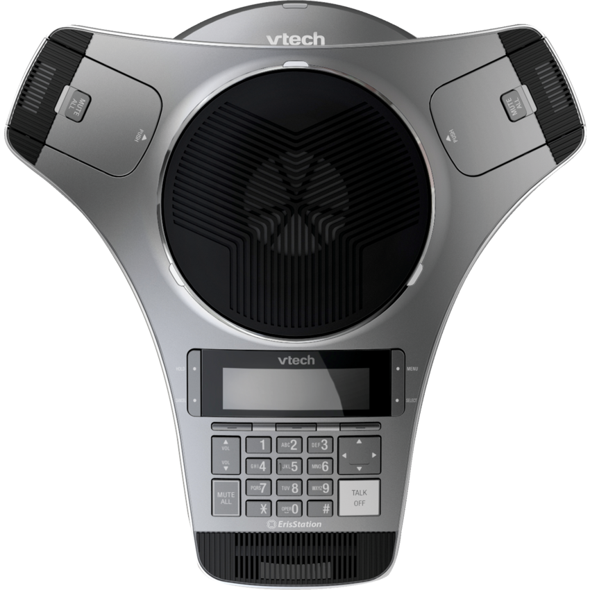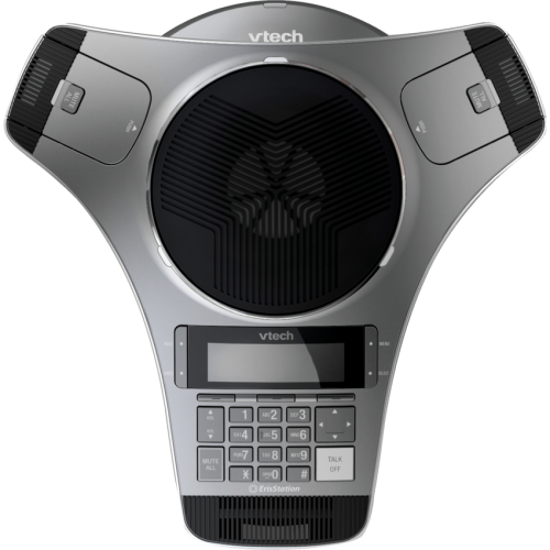 A conference phone with two DECT 6.0 wireless microphones featuring Orbitlink Wireless Technology™ that allows everyone to collaborate beyond the conference table. It delivers HD voice quality and up to 12 hours of talk time and up to 70 hours of standby. DECT 6.0 wireless technology with 64-bit digital encryption. Coverage is perfect for small to midsize conference rooms. Up to 24 hours of wireless talk time for conference phone and up to 12 hours of talk time per wireless microphone. 50 name/number Caller ID and phonebook. Features acoustic echo cancellation technology with 1 fixed and 2 DECT 6.0 wireless microphones.