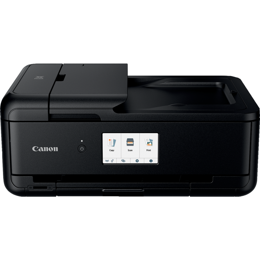 Print, copy, scan. 15 ISO ppm black, 10 ISO ppm colour. 4800 x 1200 dpi printer. Hi-Speed USB, PictBridge Wireless LAN, Wi-Fi b/g/n, Bluetooth. 11" x 17" printing, Memory card slot and 4.3" LCD touchscreen. 100-sheet letter tray. 1-year limited warranty.