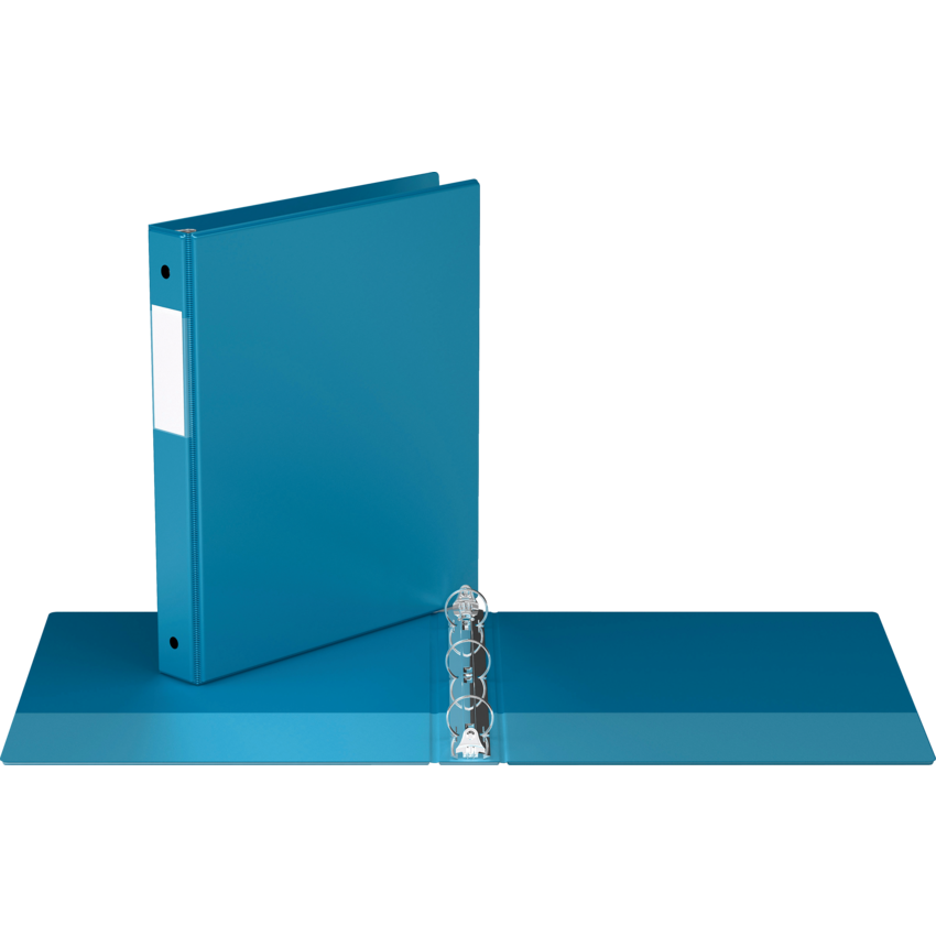 Commercial Round-Ring Binder offers easy identification for a clear, full-width label holder on the spine. Clear interior pockets on front and back covers secure loose documents. Open the round rings easily with the finger triggers. Commercial-quality binder is made with a high percentage of recycled material.