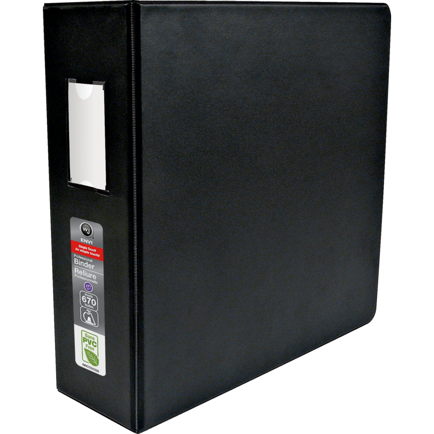 Open and close binder with a single touch. Locking mechanism ensures rings won't open if binder is dropped. PVC free. Features no-gap rings, two inside pockets and top pocket guards. Tough Hinge™ for strength and durability. 2 inside pockets. 3" capacity. Black. Also available in a carton of 6.