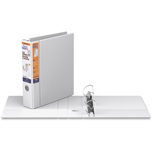 Extra-large wrap-around label can be printed on 8-1/2" x 11” paper. Back mounted rings allow pages to lie flat. Finger hole in spine for easy removal from shelf. See quickfitbinders.com for easy to use templates. Locking angle rings. Contains a minimum of 41% post-consumer recycled material. Polypropylene. 2" capacity. White.