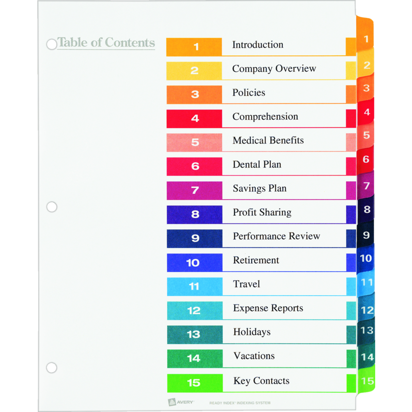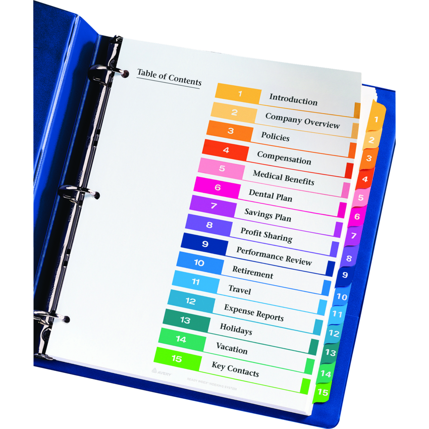 Product Name: Ready Index Customizable Table of Contents Classic Multicolor Dividers