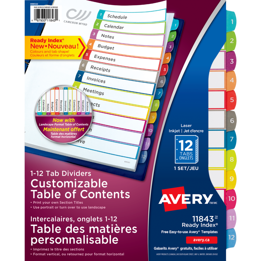 Product Name: Ready Index Customizable Table of Contents Contemporary Multicolor Dividers