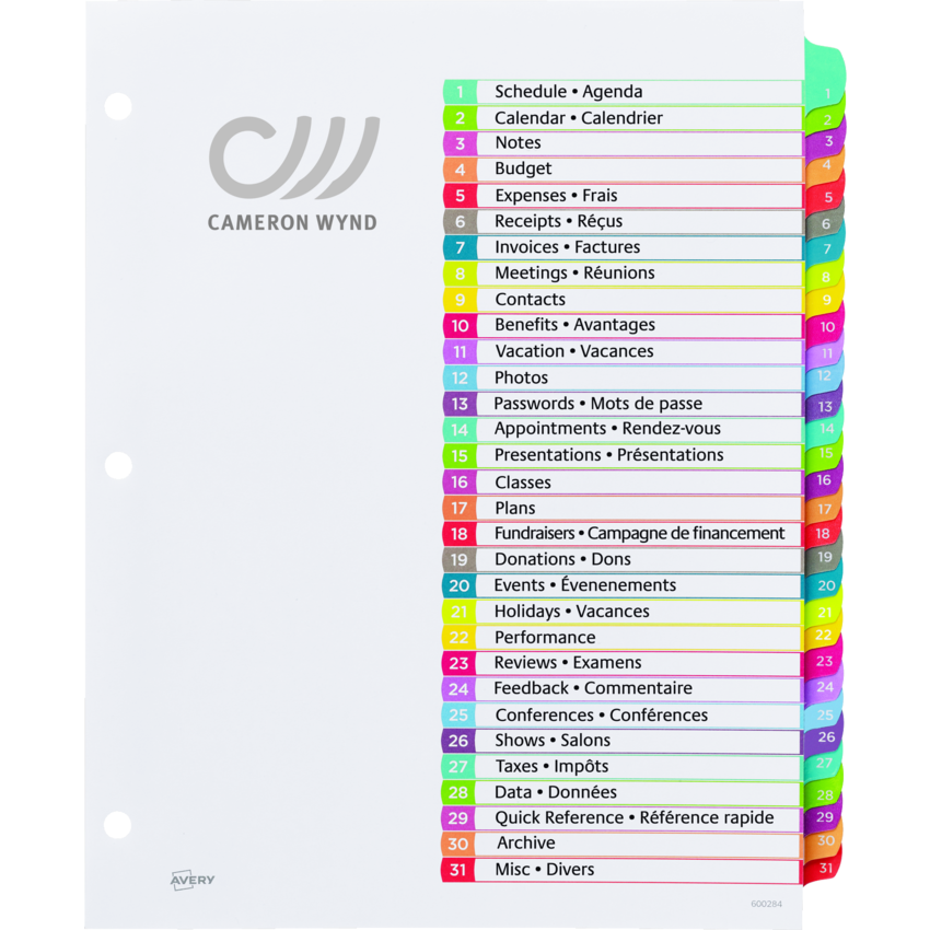 Tabs per Set: 31