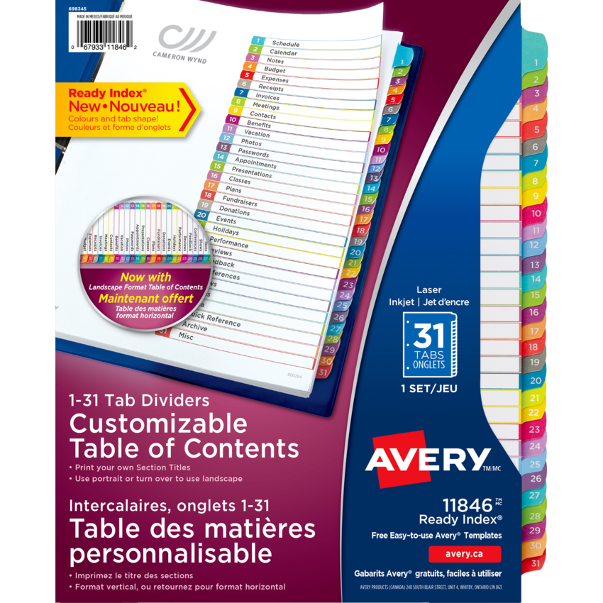 Product Name: Ready Index Customizable Table of Contents Contemporary Multicolor Dividers
