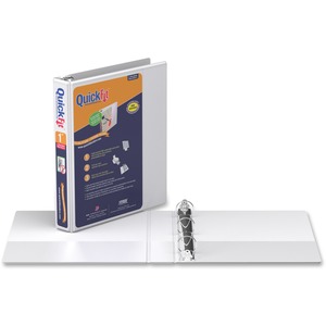 With its space-saving design, this Deluxe QuickFit Heavy-Duty Jr. View Binder fits easily in desk drawers and on bookshelves. Ink-transfer resistant clear overlays allow one-piece inserts for covers and spine. Two clear interior pockets allow easy identification of contents. The 5-1/2" x 8-1/2" sheet size view binder is ideal for employee handbooks, product manuals and training manuals. Templates are available online for easy customization. Binder is made with a high percentage of recycled content.