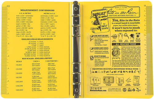 Rite in the Rain compact field binders and loose leaf are outstanding for the organizationally-inclined field worker. our tough and rigid polydura cover deflects moisture and stains away from your precious notes. our binder rings snap confidently into place and securely lock down your loose paperwork. re-arrange your documents on the go, and keep every page of your notes in a place where you can quickly find it. Our weather-resistant and archival-grade paper will survive a bout of weather and a lifetime in storage.