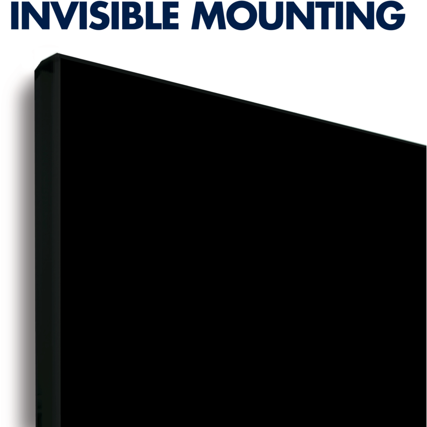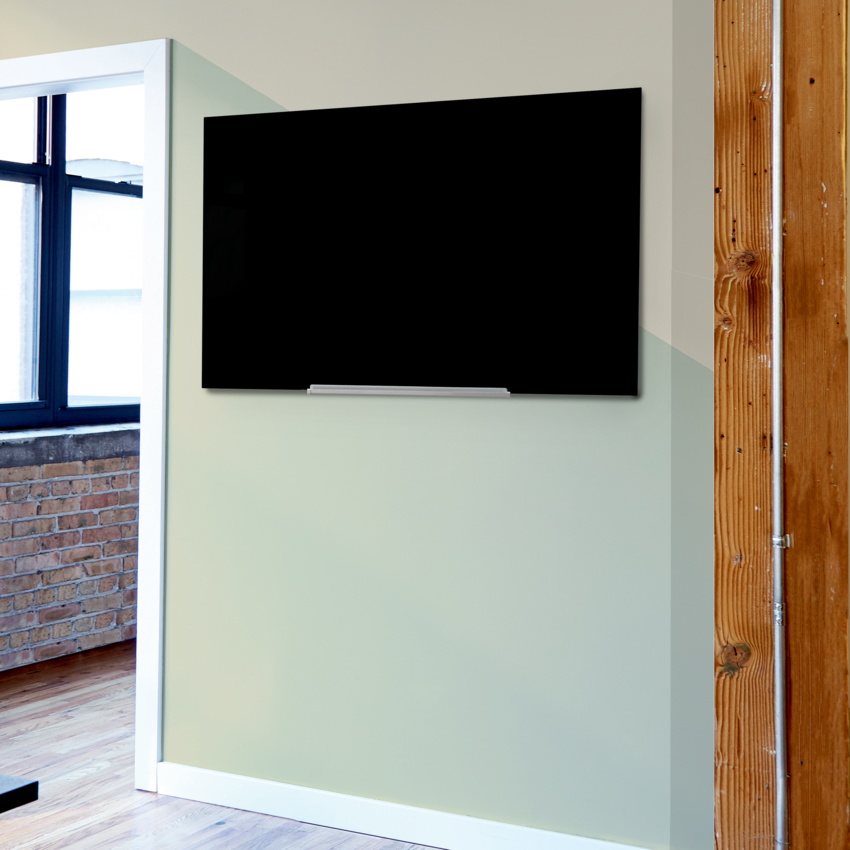 Tempered glass will not stain or ghost. Magnetic surface allows board to double as a display surface. Invisible mounting hardware. Accessory tray can be removed. Board sizes in modern 16:9 ratio wide format Includes accessory tray, 1 marker and 2 high-power glass board magnets. Limited 20-year warranty. 42" x 74". Black.