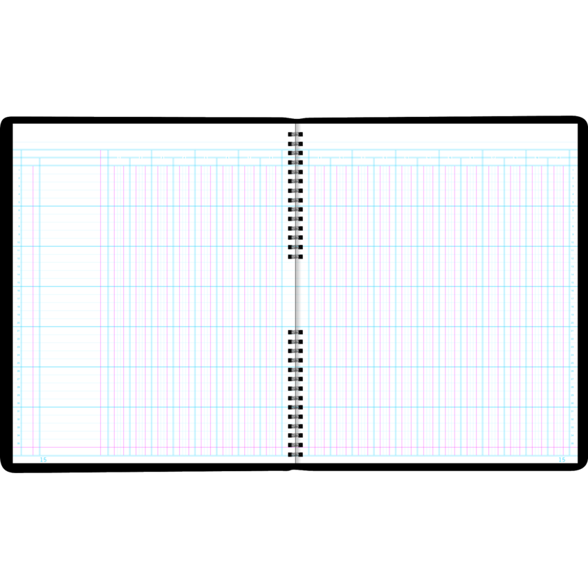 Pages with perforated, tear-off heading section to eliminate repetitious writing. Feint rulings. Contains a minimum of 50% post-consumer recycled material. FSC® Certified. Split twin wire bound. Flexible cover. White paper with red and blue ruling, numbered. 20 Columns. Double page. 80 pages. 12" x 10".