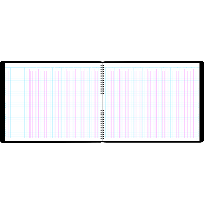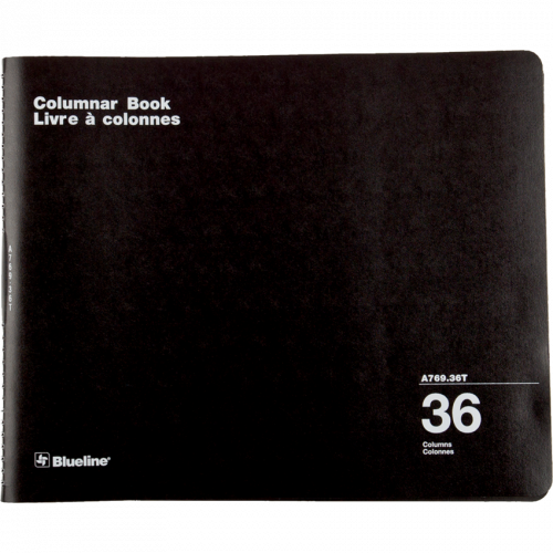 Red and blue ruling on white bond paper. Pages with perforated, tear-off heading section to eliminate repetitious writing. Double page rulings: 24, 30, 36 columns. Contains a minimum of 50% post-consumer recycled material. FSC® Certified. Split twin wire bound. Flexible cover. 36 Columns. 80 numbered pages. 12" x 14-15/16".