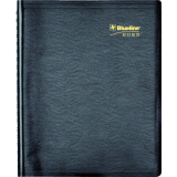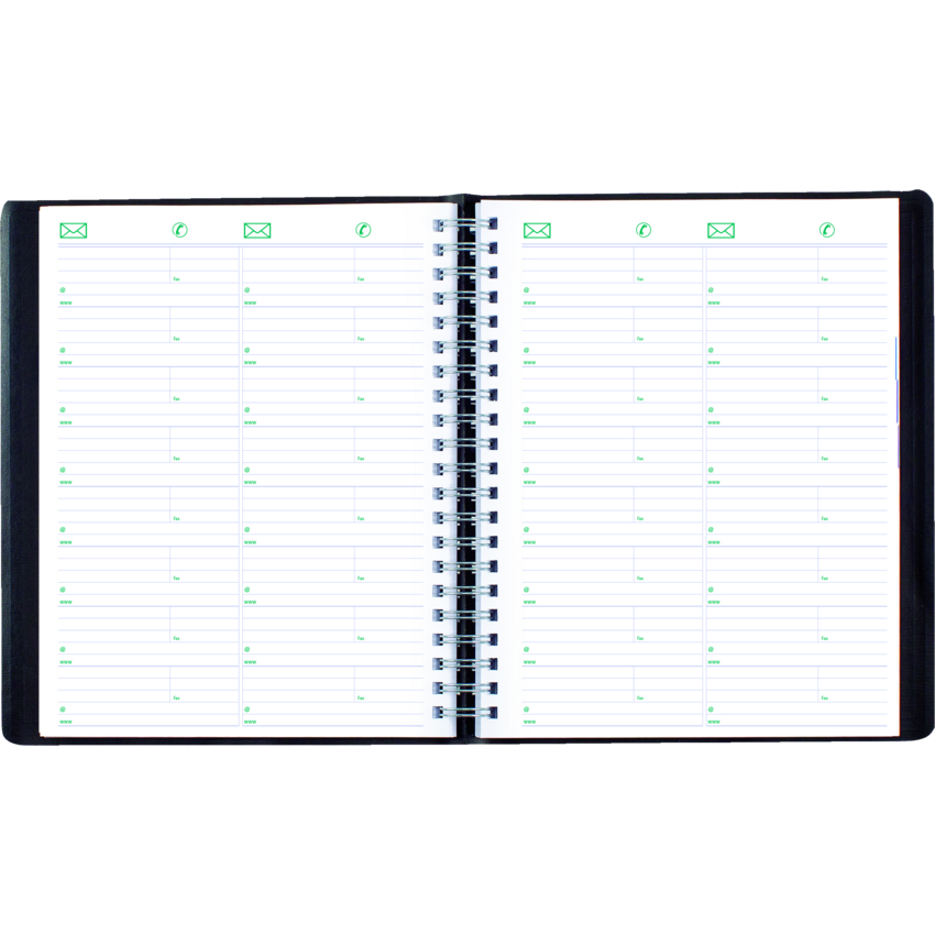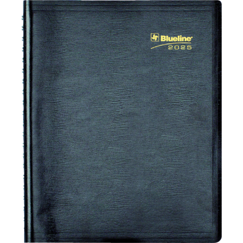 Contains a minimum of 50% post-consumer recycled material. FSC® Certified. Twin wire bound. Soft, lizard-like cover. 1 page per day. 7:00 a.m. to 8:30 p.m. in 1/2 hour intervals. Features space for evening appointments. “Things to do” section. 11" x 8-1/2". Bilingual. Black.