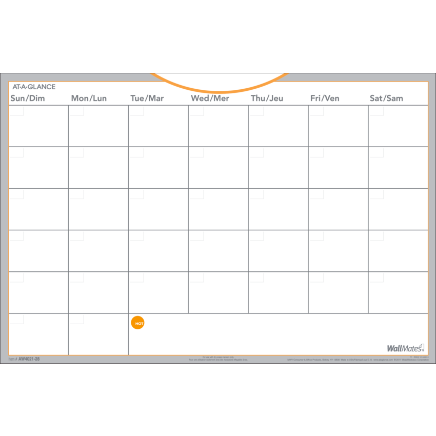WallMates Self-Adhesive Dry Erase Wall Planning Set includes both an 18" x 12" undated monthly planning surface and an 18" x 12" writing memo surface, and includes a dry erase marker. The monthly planning surface provides large daily blocks with a hot reminder notes area and is easy to erase and reuse for the next month. The writing surface features open space that is ideal for writing reminder notes, sharing information with coworkers or customers, collaborating, interacting and fully exploring your creativity. These dry erase surfaces are quick and easy to put on your wall. Just peel and stick and you're done. No tools needed. No damage done. They adhere to most hard, flat surfaces. Combine with other WallMates wall planners to create a custom dry-erase planning center.