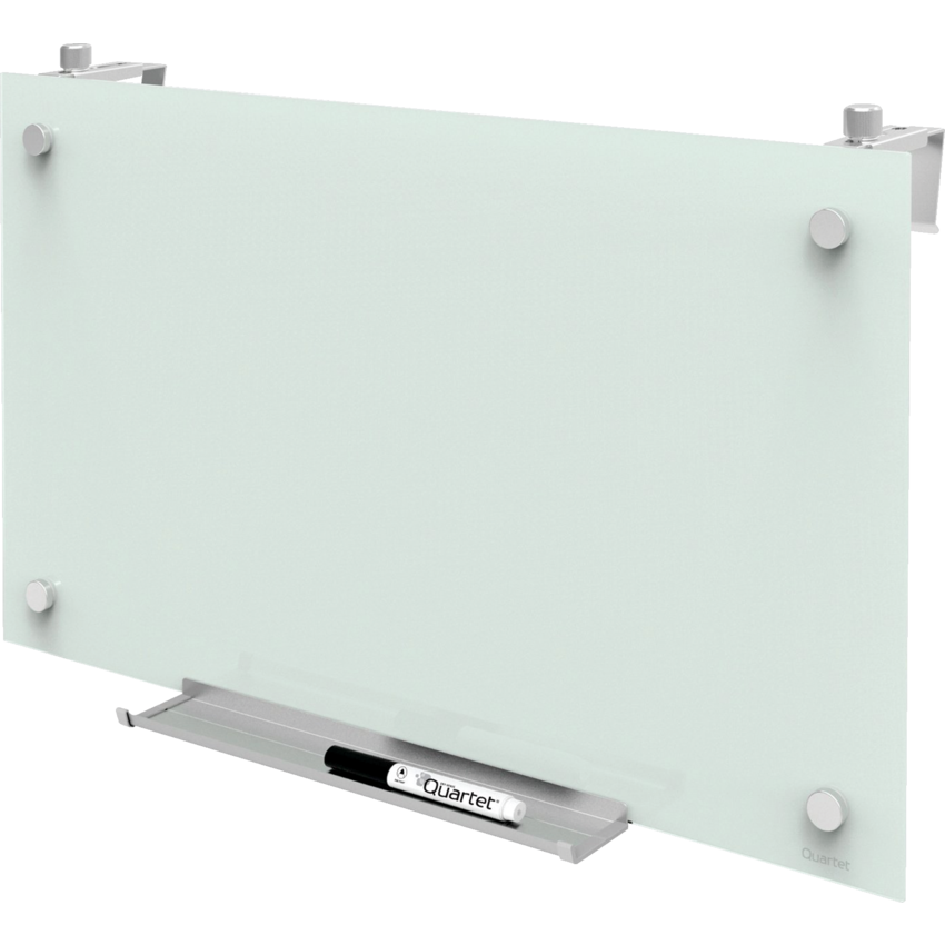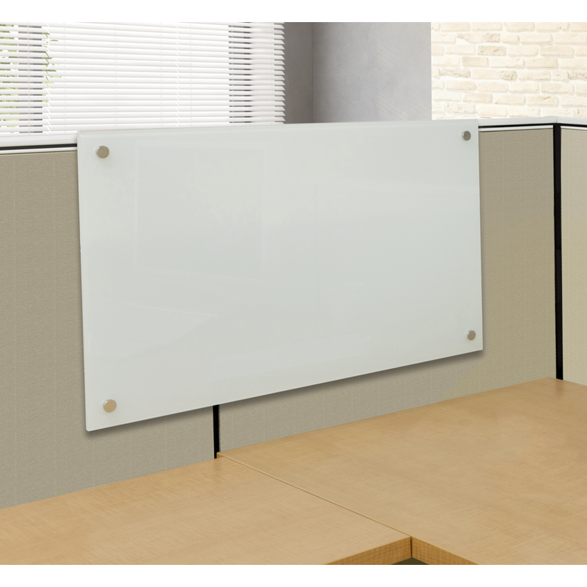 Tempered glass will not stain or ghost. Magnetic surface (rare earth magnets required). Adjustable brackets hang over cubicle walls, or use wall mounting hardware for wall use Includes a tray, dry-erase marker and two magnets. 14" x 24". Limited 15-year warranty.