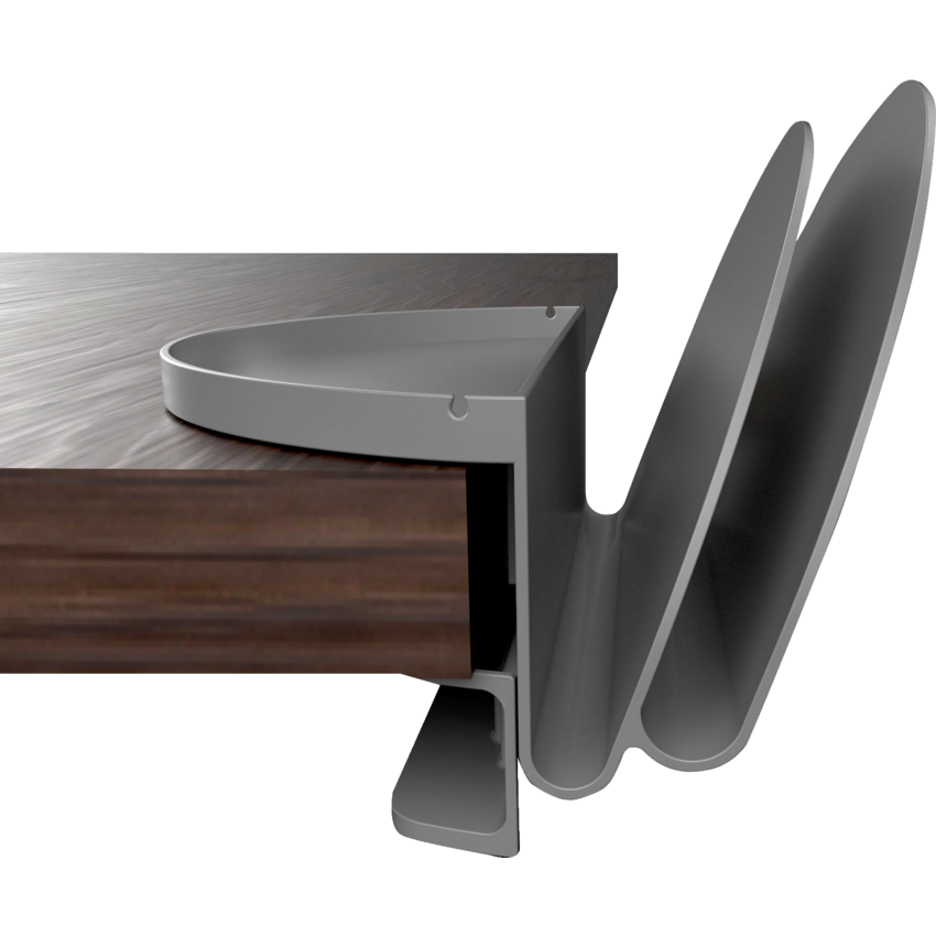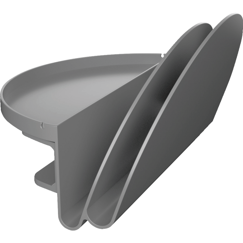 Conveniently holds your items steady and out of the way. Easily and securely clamps to side of desk, no tools needed. Adjusts to fit 3/4" to 2" flat rails. Protective cushioned pads are safe for desktop surfaces Desk File Organizer. Two sections perfect for standard file folders and notepads. Built-in tray keeps pens, pencils, paper clips or staplers within reach. ABS. 12"W x 10"D x 7-1/8"H. Grey.