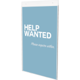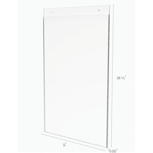 Take advantage of empty wall space saving valuable counter space. Top-loading styrene plastic speeds changing inserts. Pre-drilled holes for easy wall-mounting. Portrait. 11" x 17". Clear.