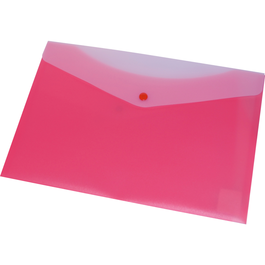 Poly envelopes have one pocket with a snap closure and one slide-in pocket 13-1/4" x 9". Strawberry.