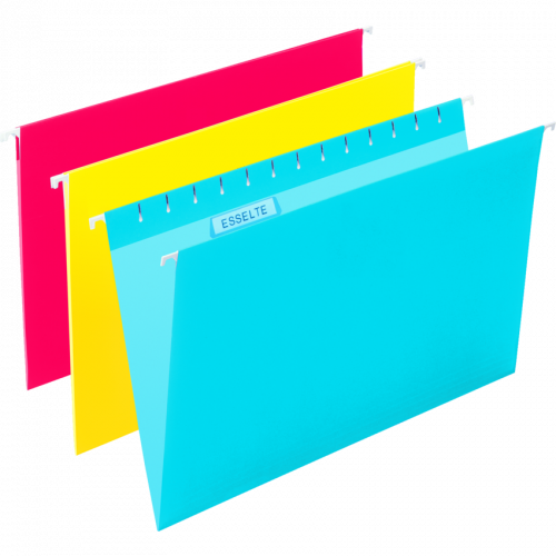Coloured hanging file folders help you organize your documents. Made with crimped style hanging rods for added strength, these durable folders handle multiple documents at a time. Folders offer 1/5-cut tabs and accent colored interiors to prevent misfiles. Eco-friendly design is made with post-consumer material to minimize environmental impact. File folders are perfect for storing files in offices, homes, schools and more.