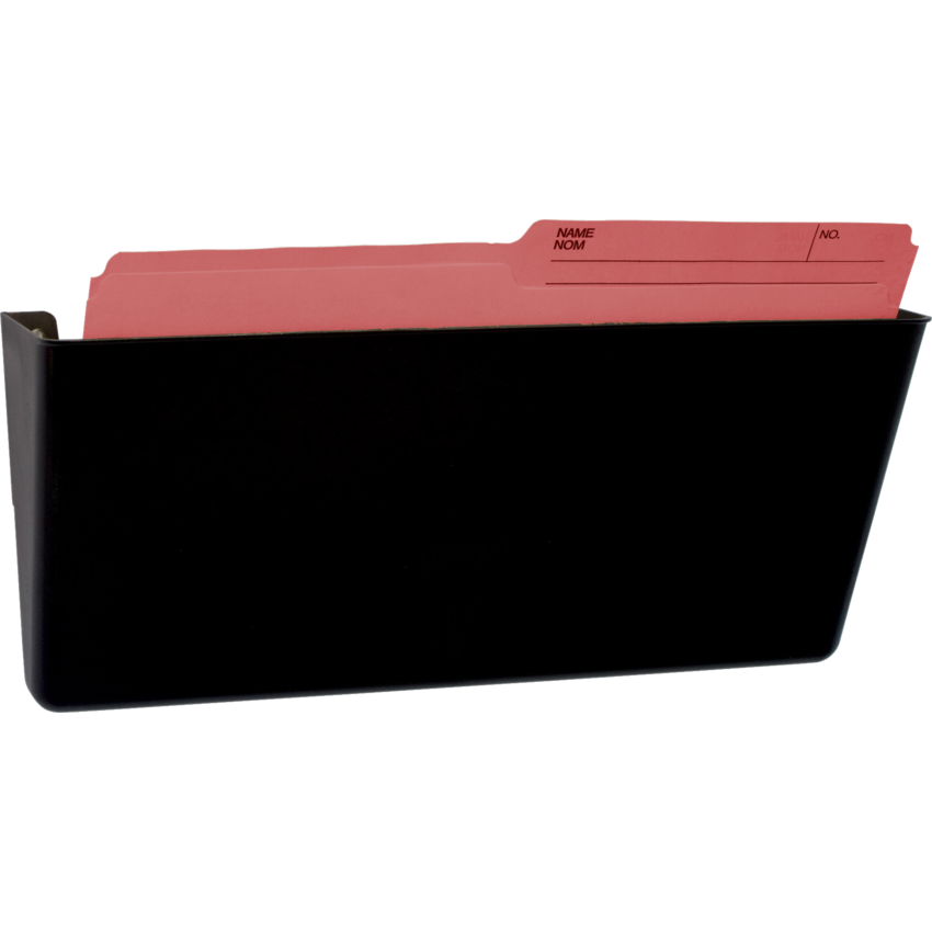 Snap and Stack system makes installation easy. Spacing between the pockets is adjustable. Mount the first pocket and simply snap on additional pockets as needed Contains 100% post-consumer recycled material. Includes mounting hardware. Legal size. 16-1/4”W x 4”D x 7”H. Black. 2/pkg.