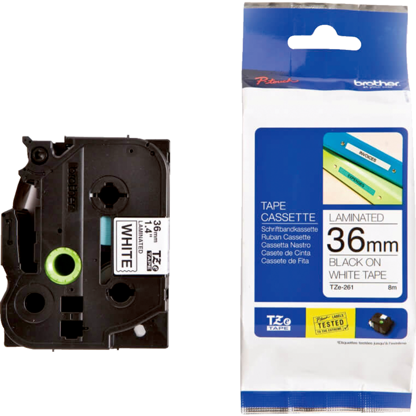 For P-Touch® GL100*, 200, 300, 310, 320, 330, 520, 530, 1000*, 1090*, 1180*, 1200*, 1230PC*, 1250*, 1290*, 1500PC*, 1700AD, 1750, 1800, 1830, 1880, 1900, 1950, 2030, 2100, 2200, 2300, 2430PC, 2500PC, 2600, 2700, 2730. *Not compatible with 18 mm (3/4") or. 36 mm (1-1/2”). Black on Yellow.
