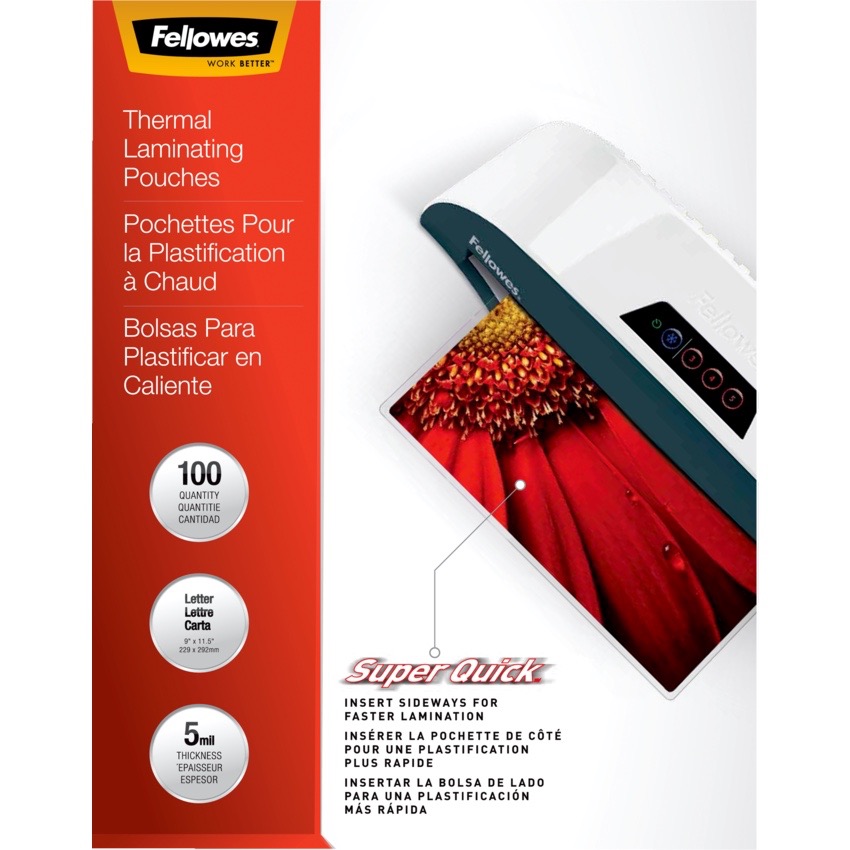 Preserve, protect, and enhance important documents with pouches that provide clear, durable results and are sealed on long side for faster lamination. For use with laminators 12.5” entry width size or wider. Compatible with all laminator brands. Letter size. 5 mil. 9" x 11-1/2". 100/pkg.