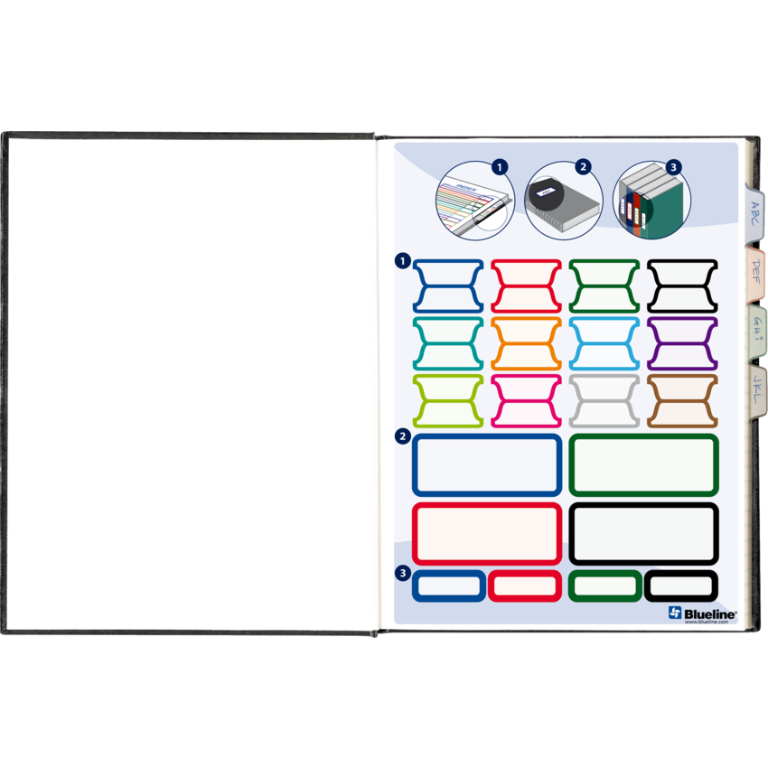 Contains a minimum of 50% post-consumer recycled material. FSC® Certified. Ruled with Margin. Hard cover. Perfect bound. Includes colour-coded self-adhesive tabs and index front sheet. 192 pages. 9-1/4" x 7-1/4". Blue. Also available in a package of 5.