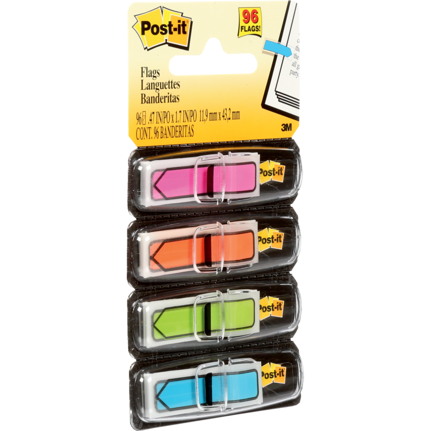 Package Contents: Includes 24 flags/dispenser, 4 dispensers/pack; 96 total flags