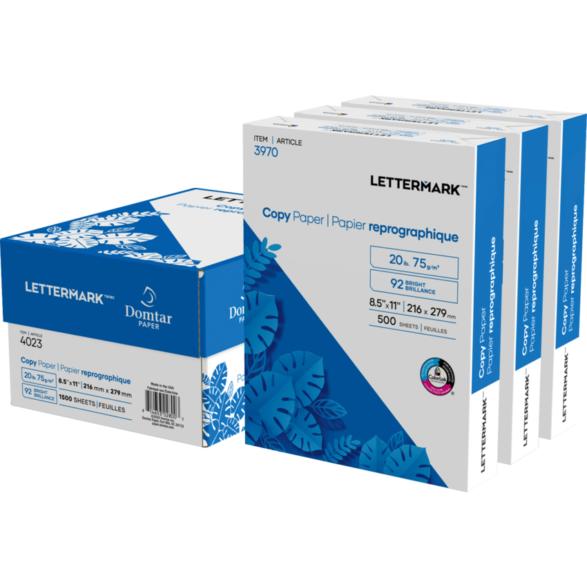 Domtar Lettermark™ Copy Paper 92B 20lb 8-1/2" x 11" 500 sheets 3 pkgs/ctn