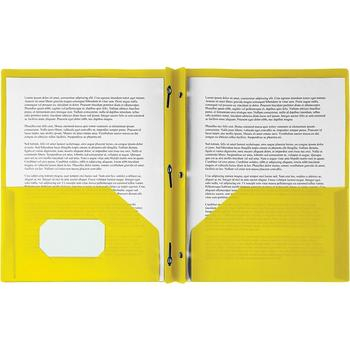 Two-pocket portfolio features a durable, polypropylene construction that resists tears and moisture to keep your important documents safely stored. Built-in prongs provide a convenient storage option for your three-hole punched papers. High-quality design works well with labels to let you create a customized appearance. Portfolio is perfect for office, home and school use. Portfolio is designed to hold up to 135 sheets of letter-size paper.