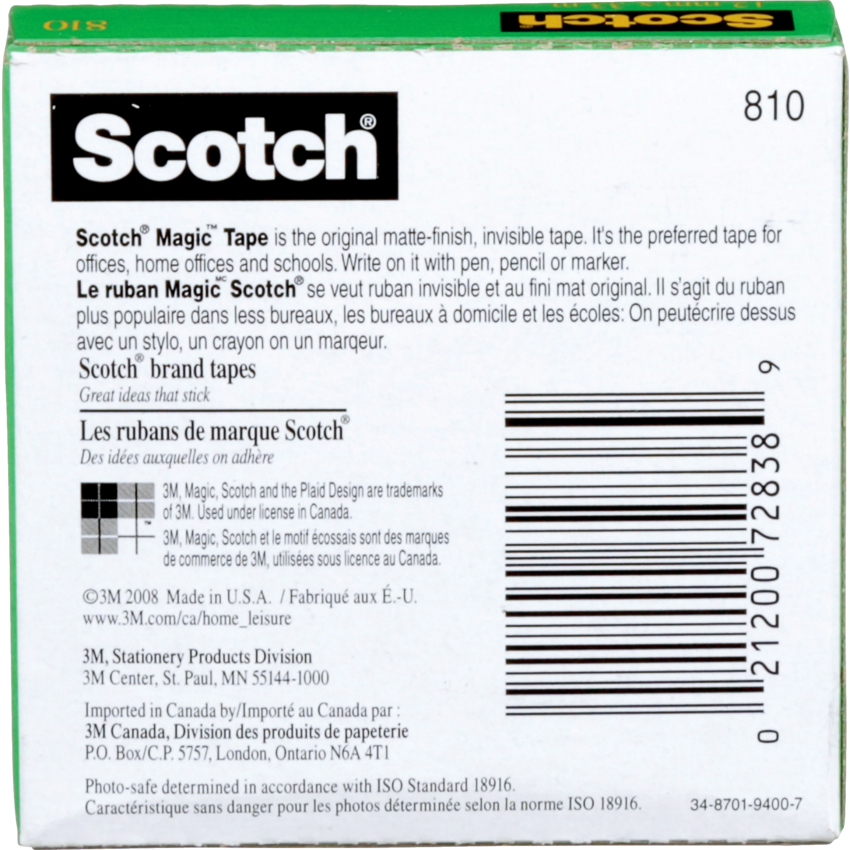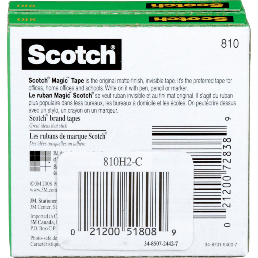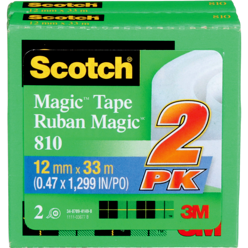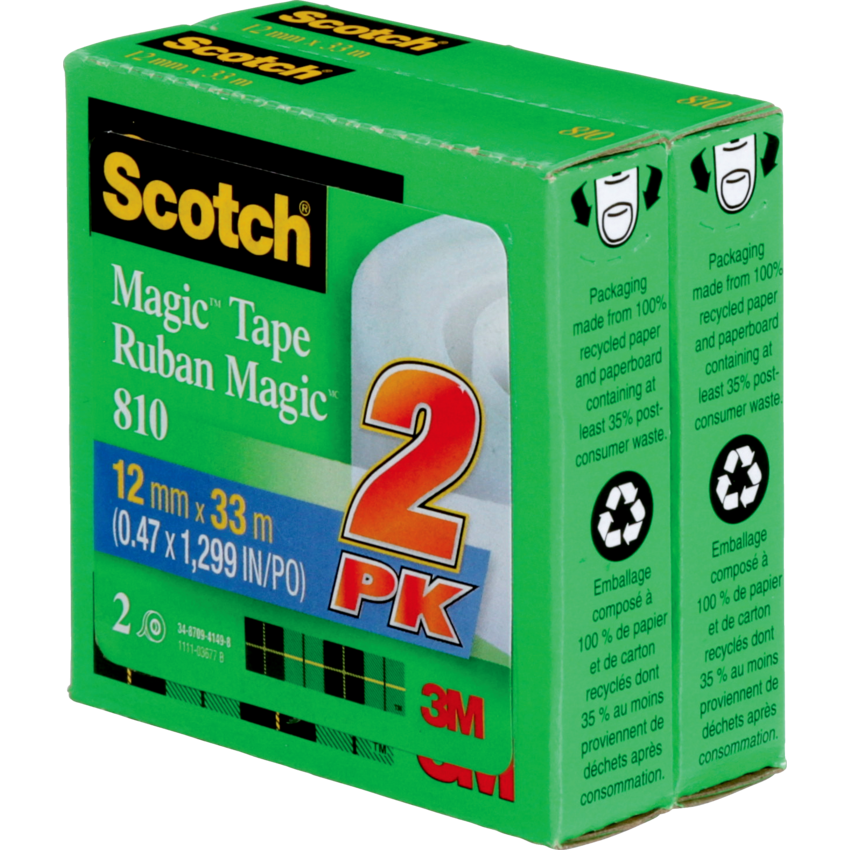 This tape can be written or typed on. Frosted appearance on the roll, yet invisible on application. Resists splitting, tearing and yellowing. Repositions easily, yet secures permanently. Won’t show on copies Refill Only. 1/2” (12.7 mm x 32.9 m). 2/pkg.