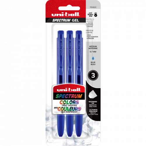 Sleek modern sophisticated design. Innovative tip is rounded and edgeless to reduce friction against the paper, resulting in a super-smooth writing experince. Uni super ink protects against water, fading and fraud Rubberized grip. 0.7 mm. Blue. 3/pkg.