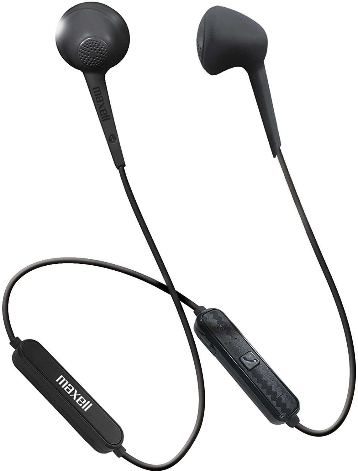 Soft rubberized on ear design for extended wear comfort fit. Noise isolating earbuds with built-in microphone. Bluetooth. Micro-USB charging cable (included). 8 hours playtime. Black.