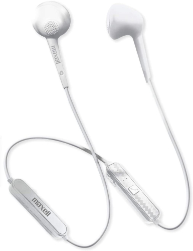 Soft rubberized on ear design for extended wear comfort fit. Noise isolating earbuds with built-in microphone. Bluetooth. Micro-USB charging cable (included). 8 hours playtime. White.