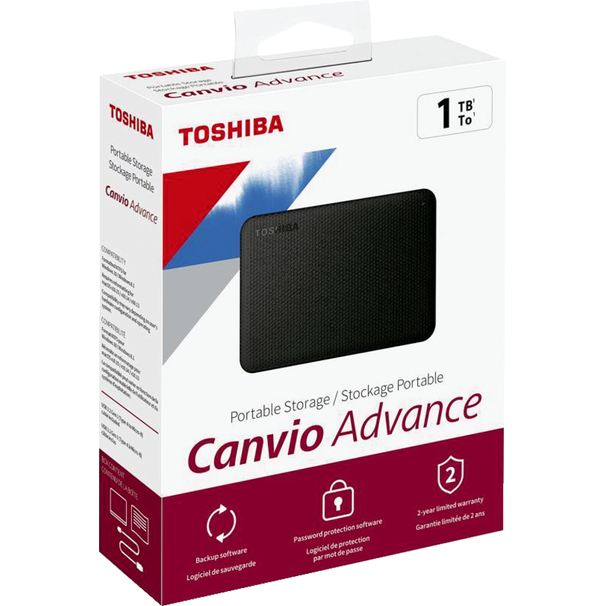 Secured in style. Take life anywhere. USB 3.2 Gen 1 (USB 2.0 compatible). Transfer rates up to 5.0 Gbit/s. Compatible with Windows®/Mac (reformatting required). Includes USB 3.2 Gen 1 Cable (Type A to Micro-B ), backup software package and easy-to-configure security software. 1TB. 2-year standard limited warranty. Black.