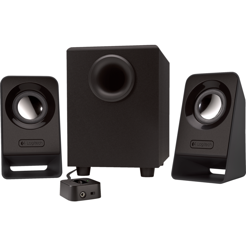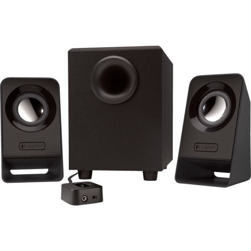 Big balanced sound. Just kick back and enjoy. Convenient control pod adjusts volume and power. Compact subwoofer with 2 satellites. Headphone jack and 3.5 mm plug. 14 watts. Subwoofer: 8-1/2"W x 6"D x 9"H and Satellites: 3-1/4"W x 3-1/4"D x 5-3/4"H. Black.